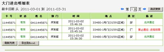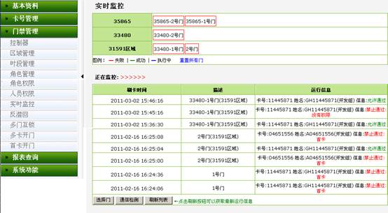 门禁管理系统负责对整个门禁系统的维护管理。实现权限上传、查询、所有门点人员进出统计信息、报警事件记录等。
