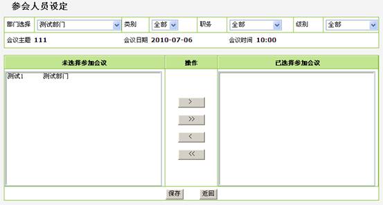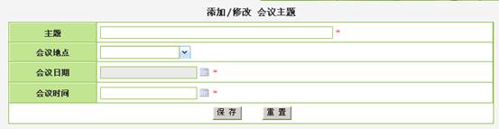 管理员通过上述界面,新增/修改会议主题、会议地点、会议日期、时间、参会人员等资料。