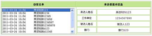 来访登记界面操作简单,能快速登记来访人员姓名、身份证号码、工作单位、被访人、时间等基本资料系统支持刷卡记录提取,通过分析刷卡数据,生成各类来访登记报表。